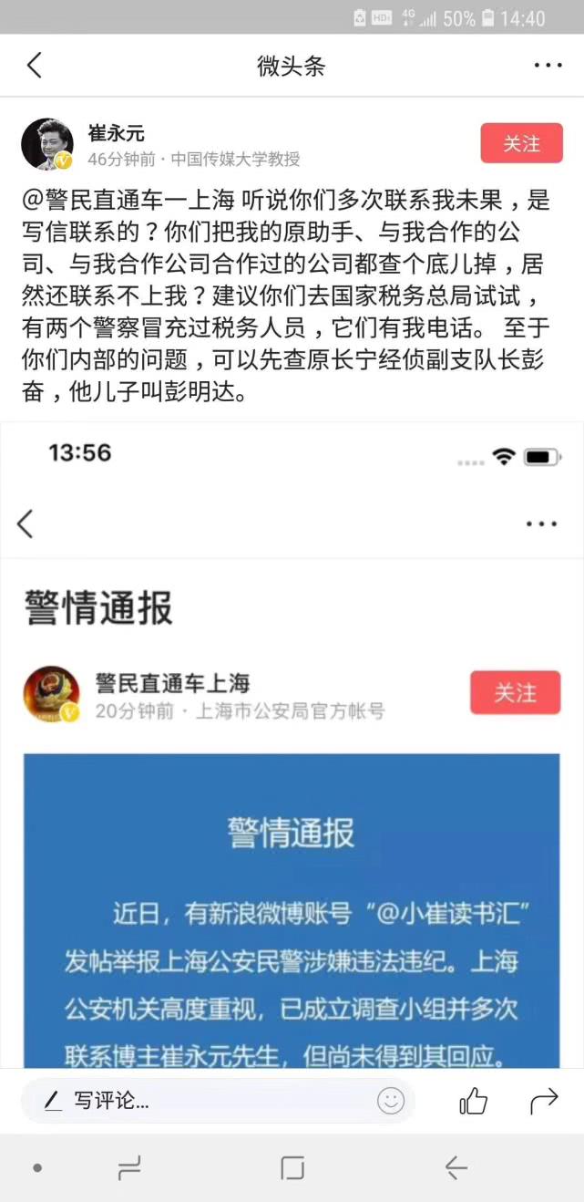 [崔永元] 上海公安回應指控 崔永元不買賬