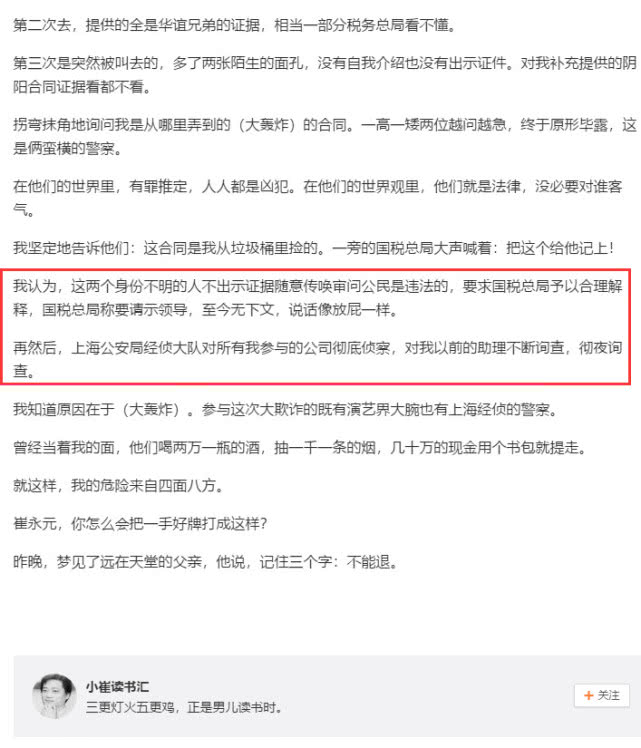 崔永元發文指中共上海警方也涉及《大轟炸》逃稅微博