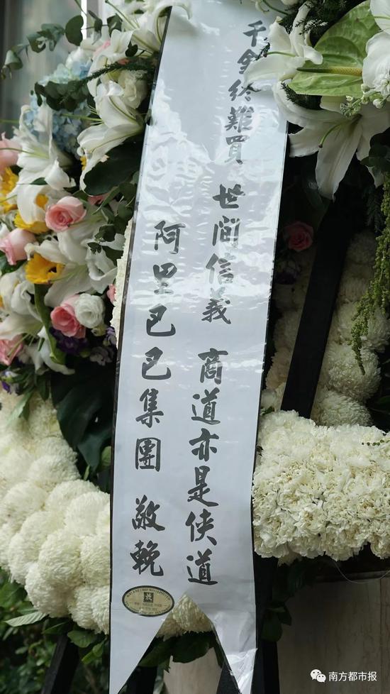 今天的喪禮會場上,各方送出的花圈挽聯擺滿了會場。