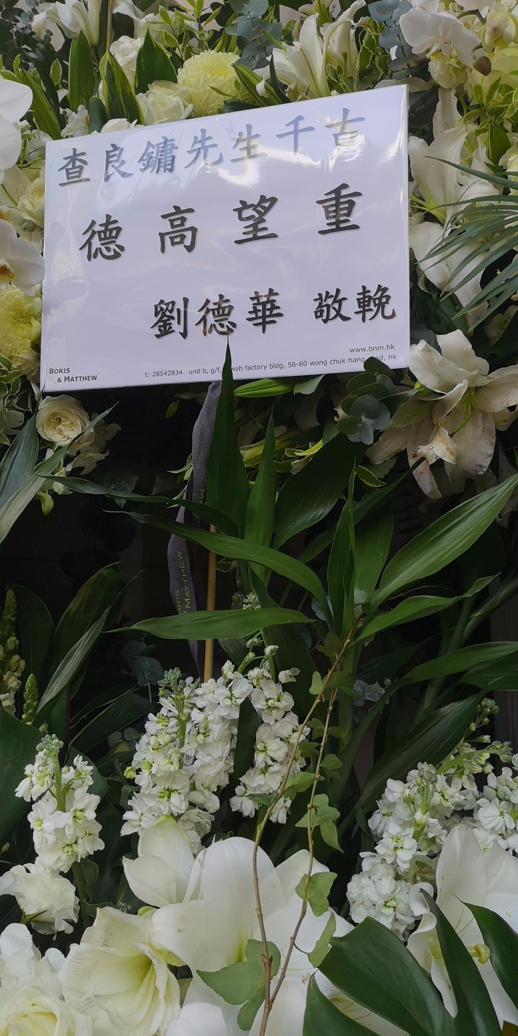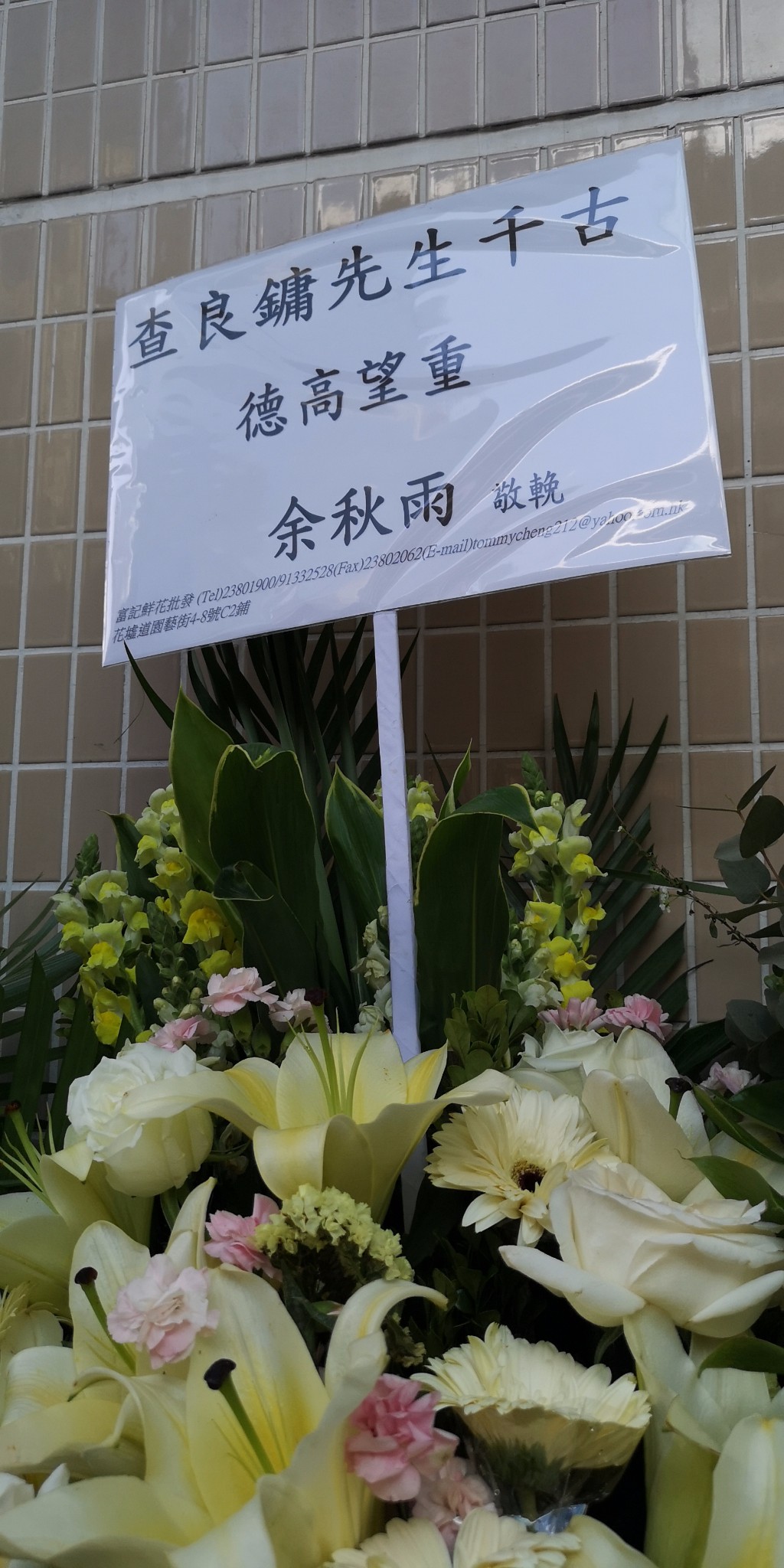 金庸的太太林怡樂指定,所有吊喪花圈都要通過位於北角堡壘街的花店James Wong Florist送到殯儀館。