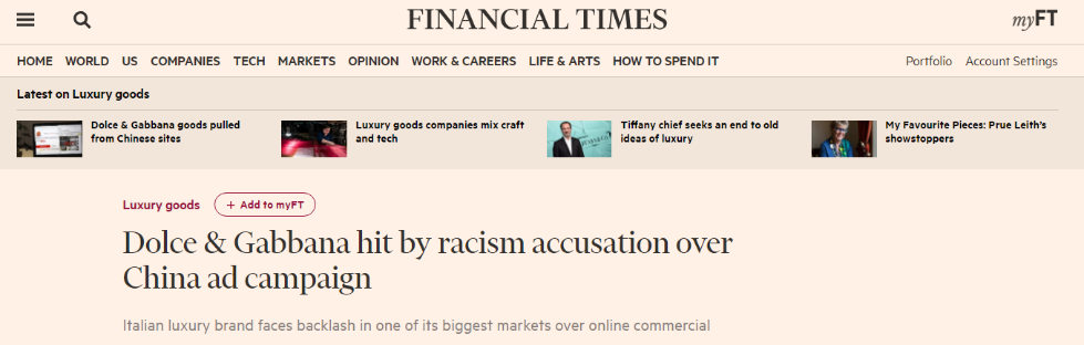 英國金融時報:廣告宣傳活動受到種族主義指控