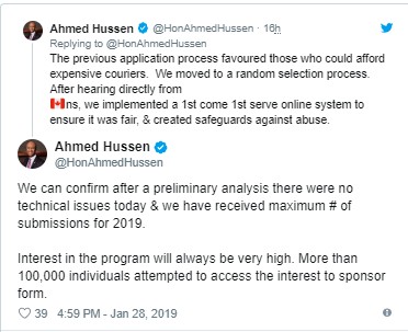 该党在一份声明中说“配额开放仅11分钟后,IRCC宣布已达到年度限额,申请程序已经结束”,“自由党政府以这种方式对待家庭是一种侮辱。 ”