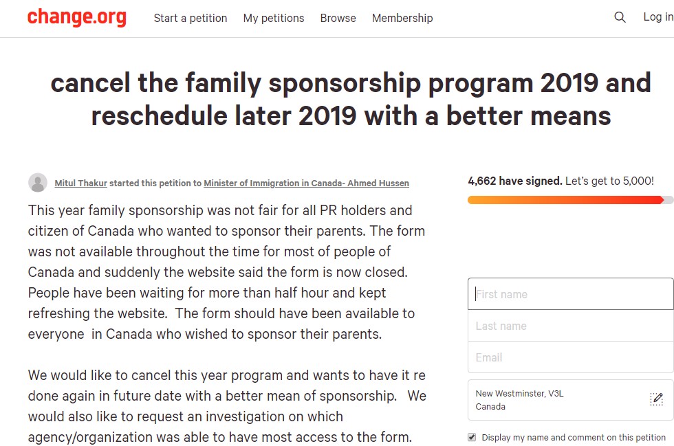 目前,已经有加拿大民众建立了一个网上请愿书,要求取消2019年的赞助计划。