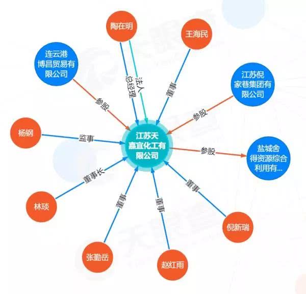 2015年9月,張勤岳不再擔任天嘉宜化工廠的法定代表人,但天眼查資料顯示,目前張勤岳仍是天嘉宜化工廠的董事。張勤岳名下有4家公司,其中,其擔任法人代表、天嘉宜化工廠同時參股的鹽城舍得資源綜合利用有限公司目前已被注銷。