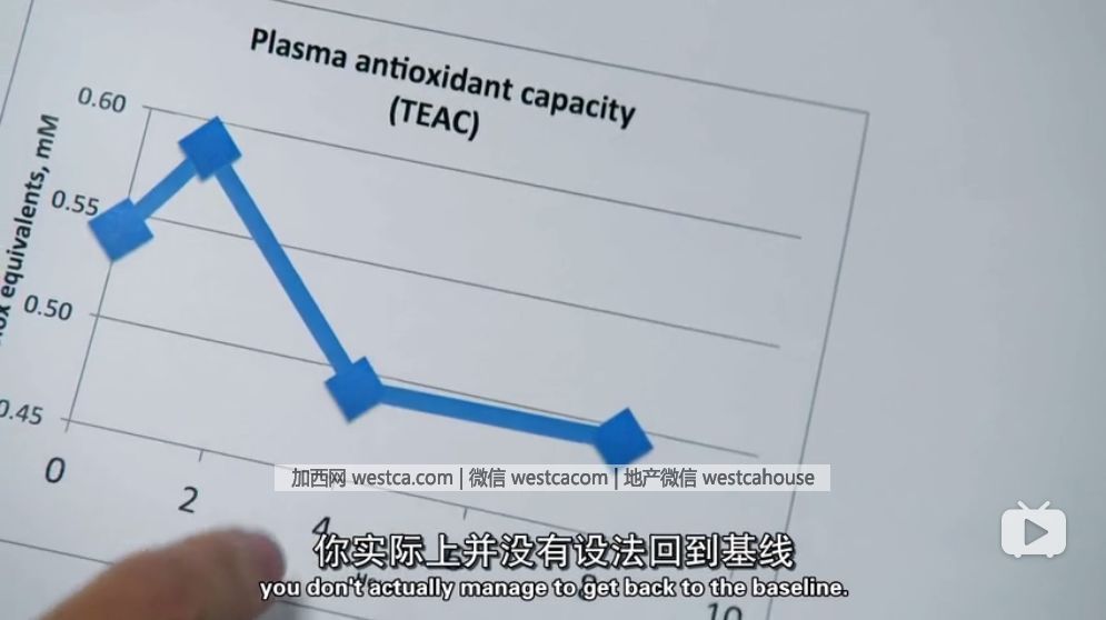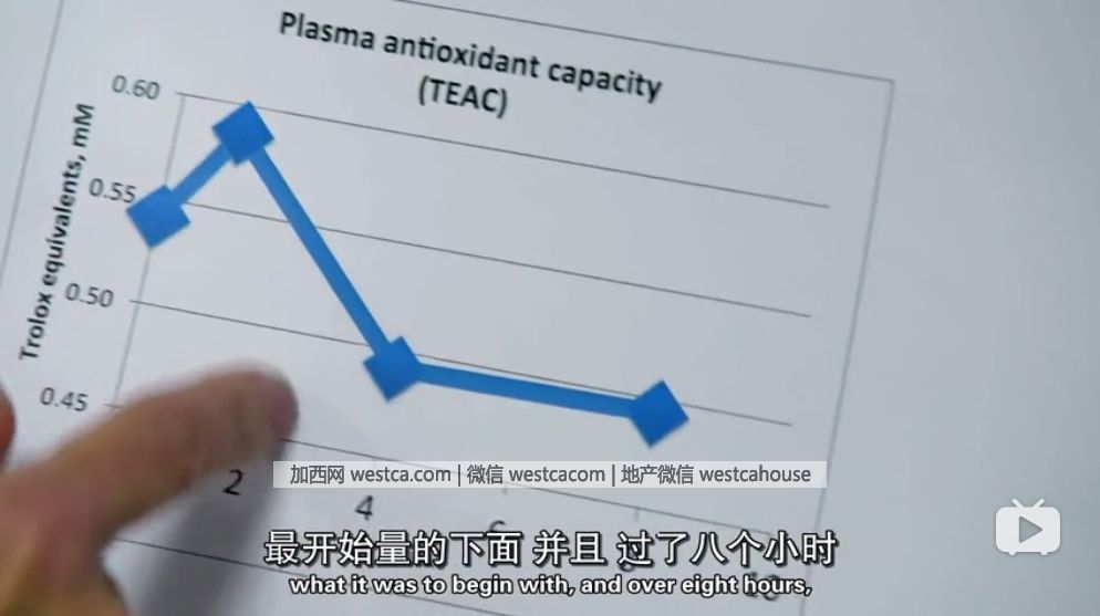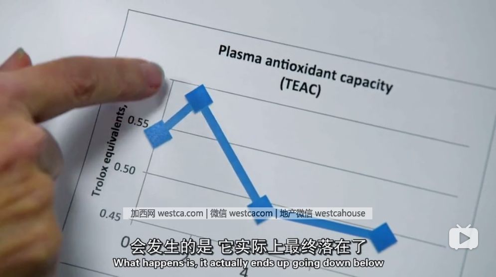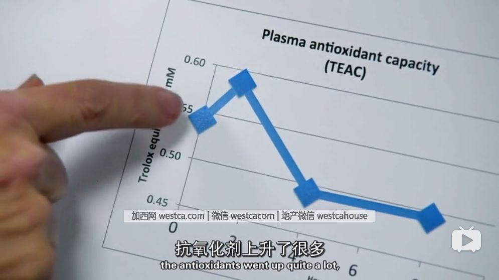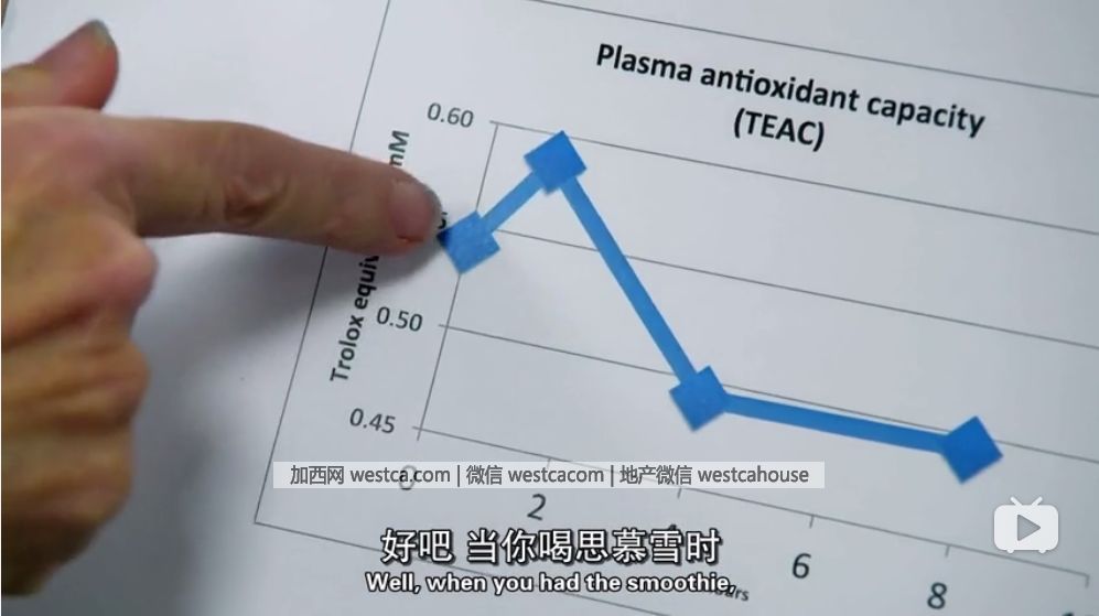 研究人员发现,主持人之前喝了果昔,一开始身体里的抗氧化剂确实升高了。