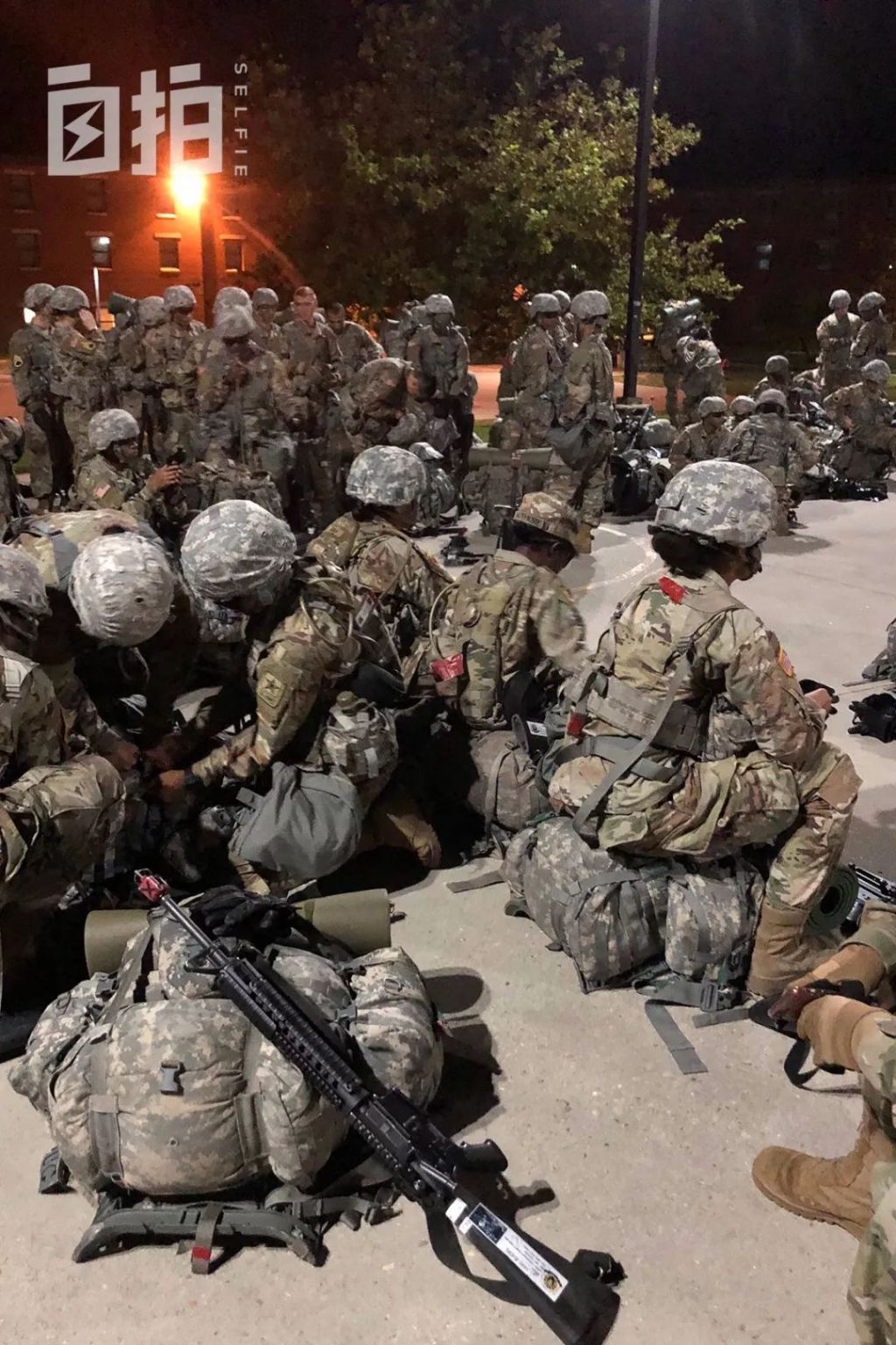 我们整整穿了三天防弹背心、战术背心、头盔、防毒面具、护膝护肘加上水袋和M16枪支,全身的装备就有七八十斤,还要背着它们天天跑来跑去,令人身心俱疲。