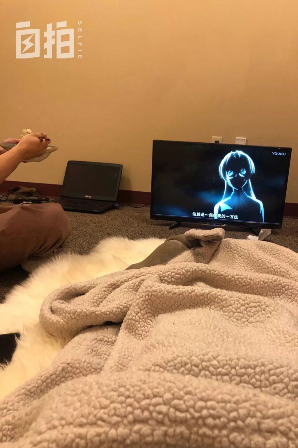 训练了一天以后,回到宿舍我就已经冻瘫了。