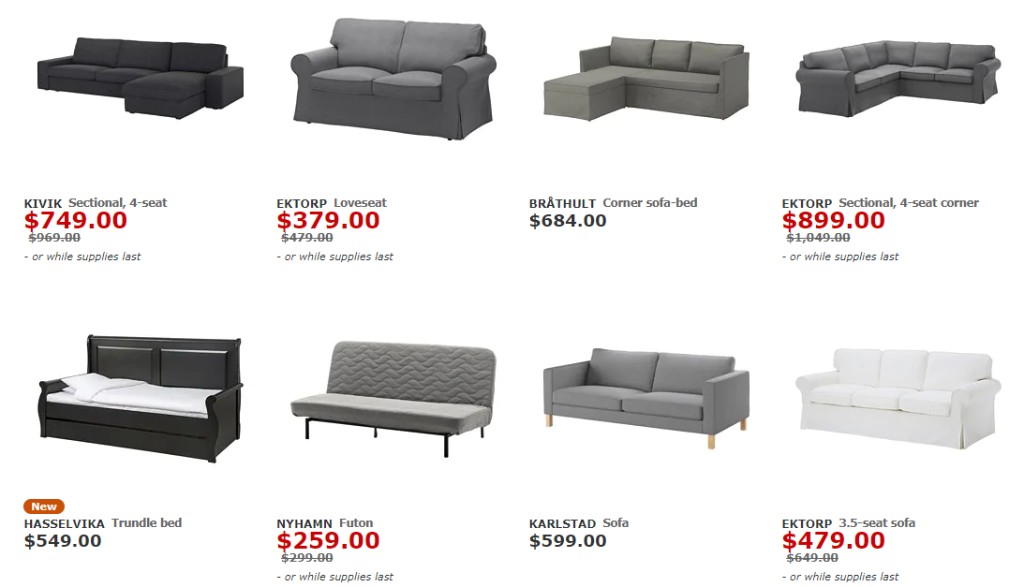 還有壹大堆折扣的沙發,減價幅度至少100刀,
