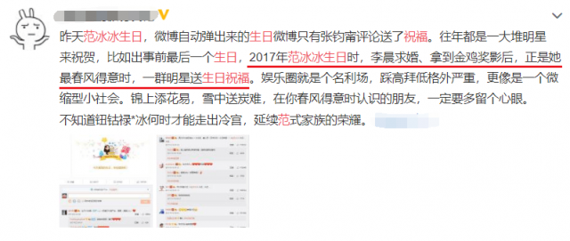 自從范冰冰陷入風波以後,圈內的人脈似乎也直線下降,在前幾天的生日時,整個娛樂圈只有寥寥幾位好友送來祝福,讓人感歎世態炎涼,娛樂圈果然只是個名利場。雖然外界對於范冰冰依然褒貶同存,不過相信還是有著許多網友希望看到她回歸的,期待那壹天。