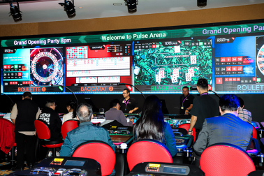 Pulse Arena娱乐厅拥有35个相互连接的桌面游戏机,借助灯光,音响和30英尺的超大视频墙,将电子桌面游戏,真人荷官及互动游戏完美融合在同一空间,为玩家带来动感十足的精彩游戏体验。