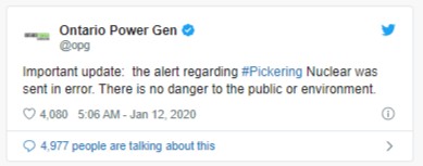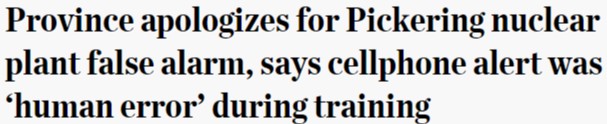 隨後省府跟進消息,稱這起誤發是在人員培訓時的壹個誤操作引起的,屬於“人為失誤”,安大略省省府為此次誤發警報道歉。