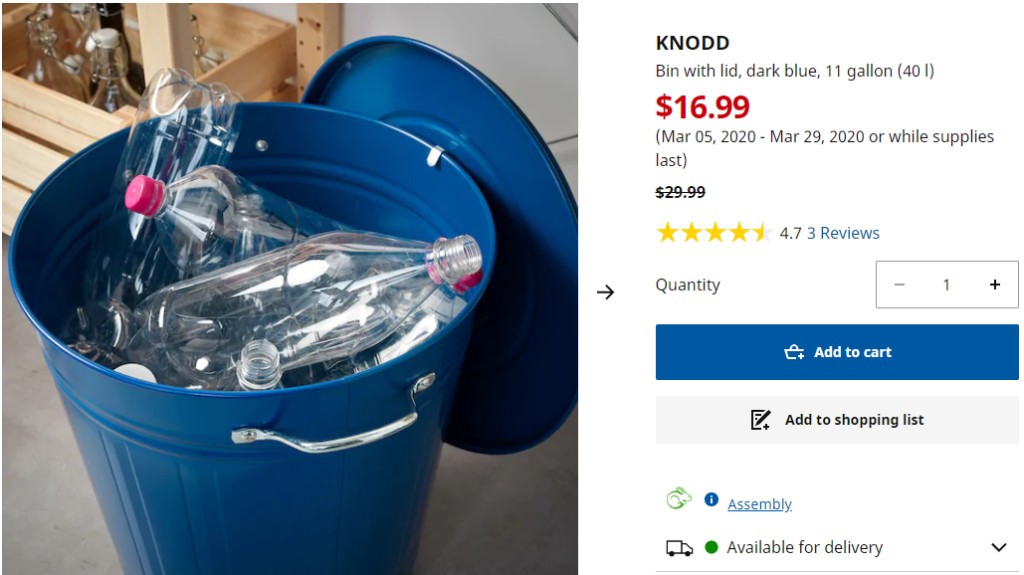 帶蓋子的儲物桶,方便收納回收空瓶等雜物,原價29.99,現價16.99