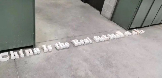 氣炸了!!!近日,有網友在加拿大的校園裡發現了言辭肮髒的辱華標語!只見教學樓走廊裡,用白色石膏制成的英文字母在地上擺成了壹句話......