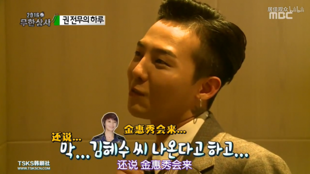 在綜藝《無限挑戰》裡,權志龍壹聽到金惠秀也來上節目,還要和他合作拍微電影,激動又期待。