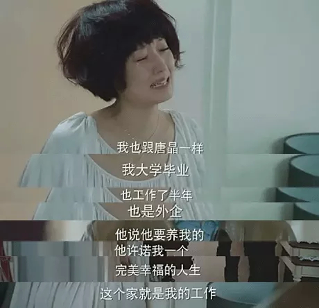 这让我想到电视剧《我的前半生》里马伊琍饰演的罗子君,在三十多岁时遭遇老公出轨而被迫离婚,曾经养尊处优的太太生活不得不戛然而止。没有一技之长的她找不到工作,世界顿时崩塌。原来,周星驰《喜剧之王》里的那句羡煞旁人的“我养你啊”,才是当下最甜的毒药。