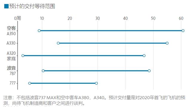 波音和空客公司各類機型預計交付時間 圖據《華爾街日報》