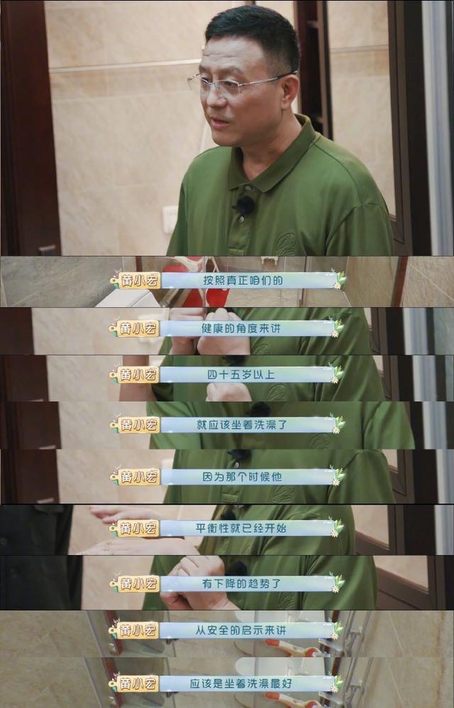 最後,黃渤還截圖這樣壹段話!來自黃小宏說的壹段話,大致內容就是從健康的角度來講,肆拾伍歲以上的人就該坐著洗澡了。因為從平衡性和安全來講,這個年齡段的人就開始在平衡性上有所下降了,所以坐著洗澡最好!