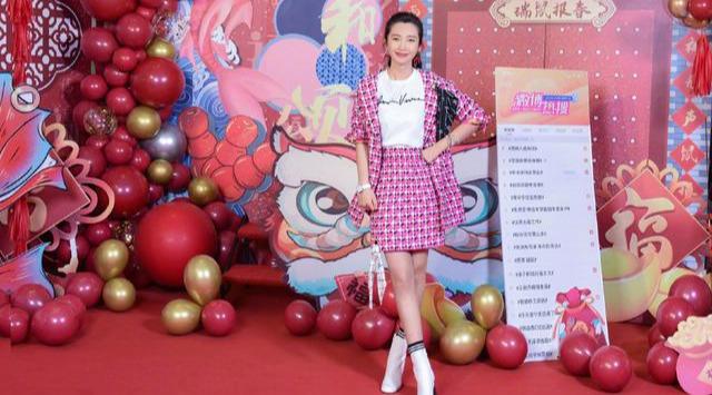 李冰冰将头发扎起来,留在脑后的设计还是挺特别的,佩戴喜庆的红色耳环,让她看上去很少女。穿着一件白色的短袖作为打底,重点还是粉色的格纹外套和一条粉色的格纹裙,这两者结合在一块儿,让她看上去更有一种知性美。