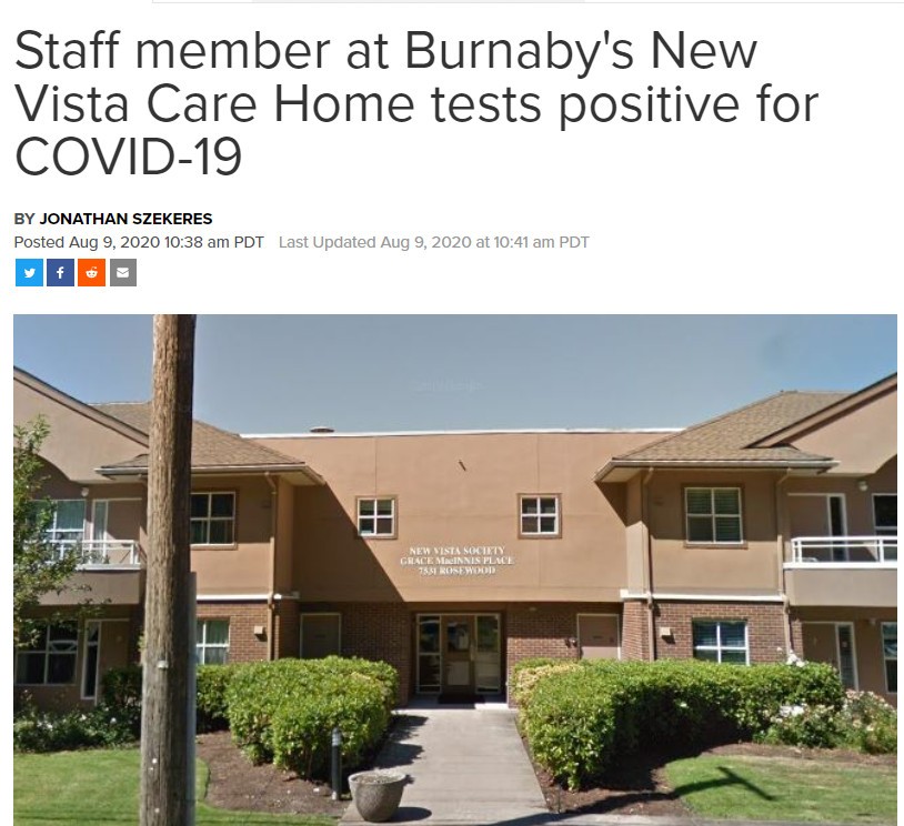 另外,據最新消息,菲沙衛生局(Fraser Health Authority)周日公布,本那比又有壹家護理中心New Vista Care Home的壹名工作人員新型冠狀病毒檢測呈陽性。