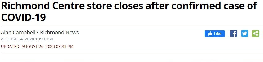 尽管当局没有确认,但列治文有零售店、体育馆和Steveston室外游泳池都爆出感染病例。