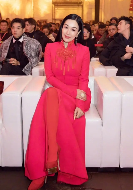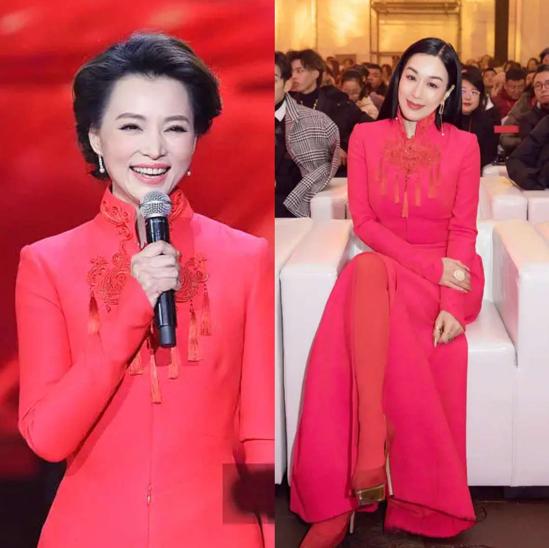 雖然董卿和鍾麗緹的身材都並不算得上是完美,但很明顯鍾麗緹相對於董卿來說,還是略胖壹些的。所以即使是同款衣服,穿在鍾麗緹身上,也還是顯得有些臃腫。但鍾麗緹的身材是大部分中年女性的標准,紅色長裙加立領的設計,把微胖的身材隱藏的嚴嚴實實,同時,搭配壹條紅色絲襪,更是顯得整個人洋氣又高級。
