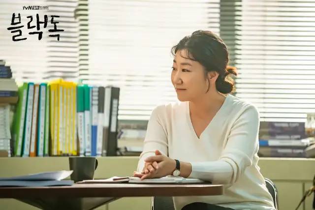 她在去年的高分韩剧《黑狗》中,扮演了严厉的升学部长。