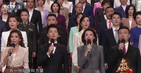 而且董卿不僅站位顯眼,作用也是核心支撐,從主持串場到參與演唱再到雕塑和采訪,貫穿全場,游刃有余。