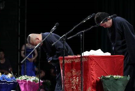 演员在面对观众表演的时候,应该行鞠躬礼,以示尊重。然而在电台广播里看不到这个动作,所以台湾的吴兆南魏龙豪先生发明了口述“上台鞠躬”四个字来表示鞠躬动作的礼节。