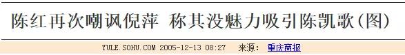 原本兩人的關系要斷了的,結果拍完《風月》後陳凱歌又在飯局裡與陳紅搭上關系,全然不顧老情人倪萍6年的辛苦付出。