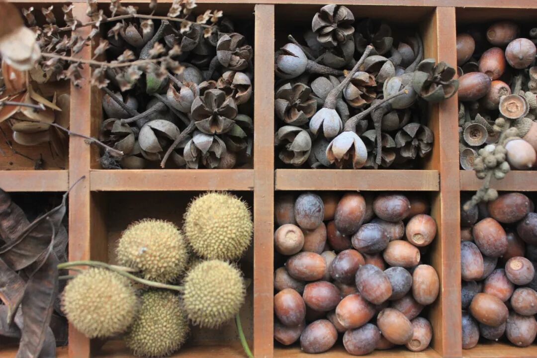 木荷果保持着花朵的模样,分五瓣裂开来,和枯莲蓬一样有意味,可捡几枝插瓶,很久都不变形。还有,可爱的橡子们,每次遇见,我都克制不住自己的收藏癖,总要像松鼠般,兴致勃勃地捡一小袋。