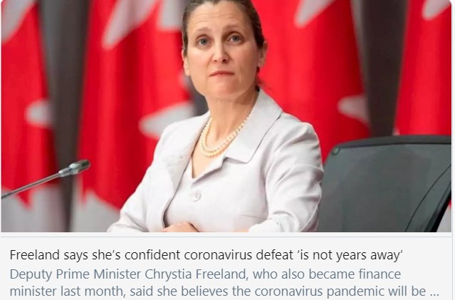 面對今年財政赤字將高達3,430億加元的危勢下,該部長鼓足勇氣表示,當病毒也許在數年內被徹底控制時,這筆支出將被終結!