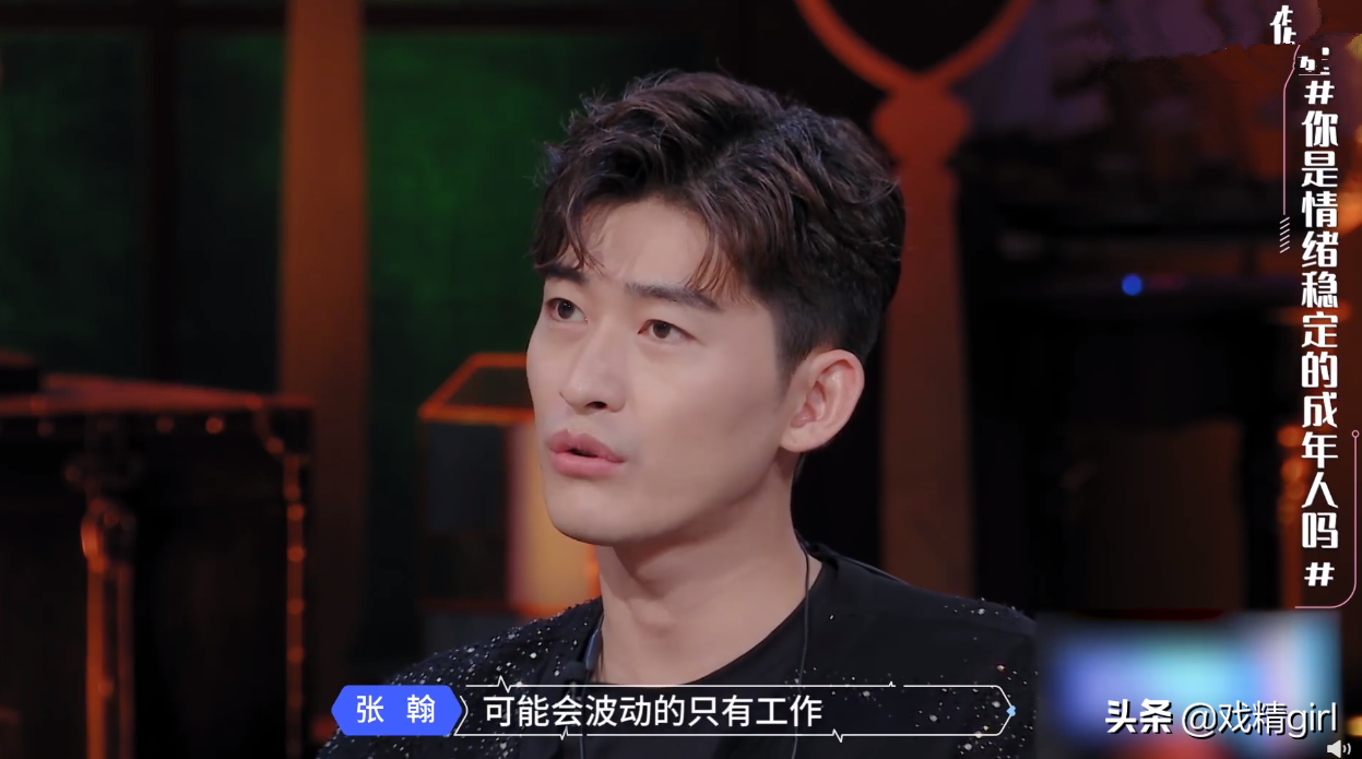 張翰表示現在能讓他情緒波動的就只有工作了,因為他現在沒有別的東西,所以心態比較平穩,遇到事情就解決問題就行了,解決不了就睡壹覺第贰天再說,但是在談戀愛時無論男生女生,能控制好情緒很重要。