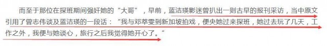 有網友扒出藍潔瑛確實曾去新加坡探班過曾志偉,曾志偉在壹次采訪中提到過藍潔瑛去新加坡探班他的事情。