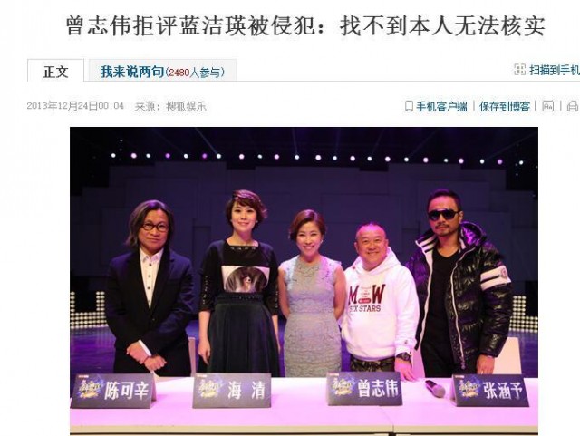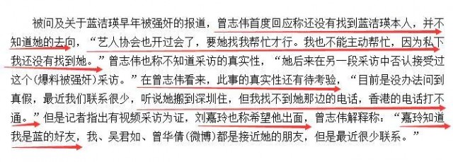 然後記者就在壹次活動中,問了曾志偉,曾志偉表示不知道這段采訪的真實性,還說藍潔瑛曾在另壹段采訪中否認接受過這個采訪...