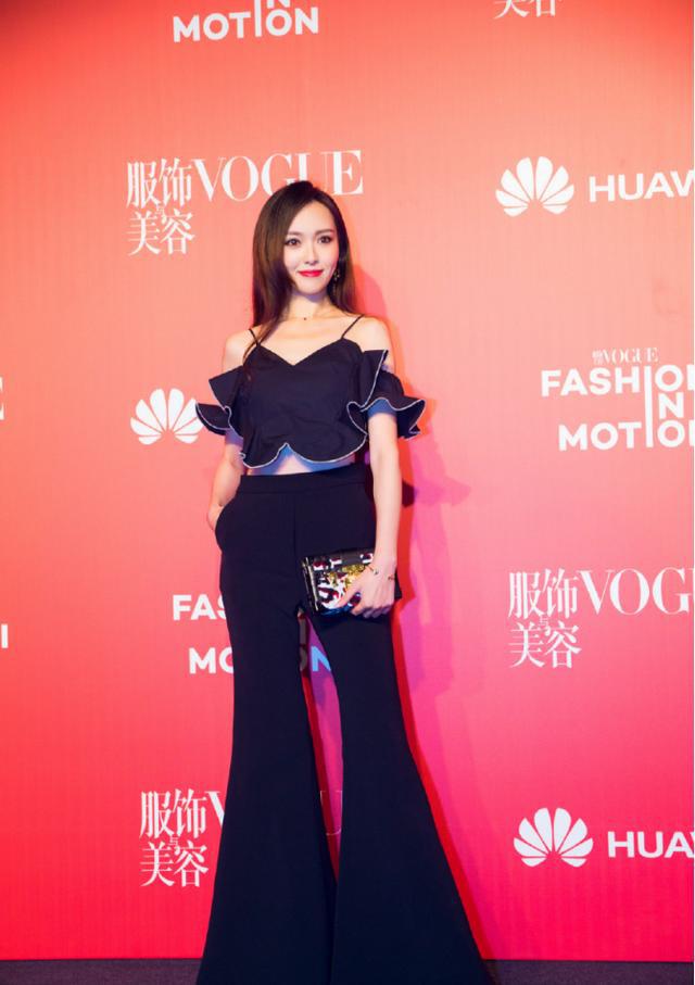[唐嫣] 唐嫣身材穿啥都不差 黑色吊帶優雅