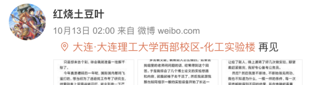 大連理工大學的壹名研究生@紅燒土豆葉,在實驗室自殺身亡。