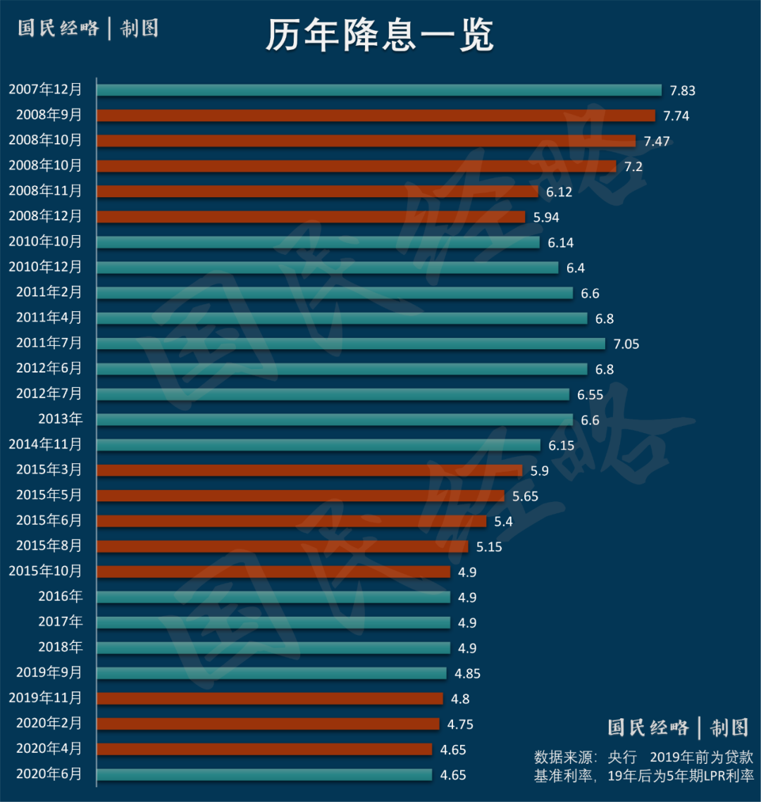 數據顯示, 2008年連續5次降息,累計降了189個基點;2015年也是5次降息,累計降了125個基點。
