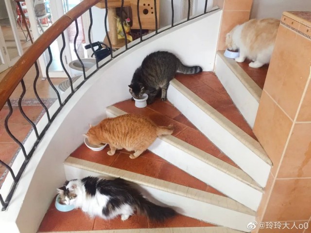因為喜歡貓,他們收養了許多被遺棄的流浪貓。