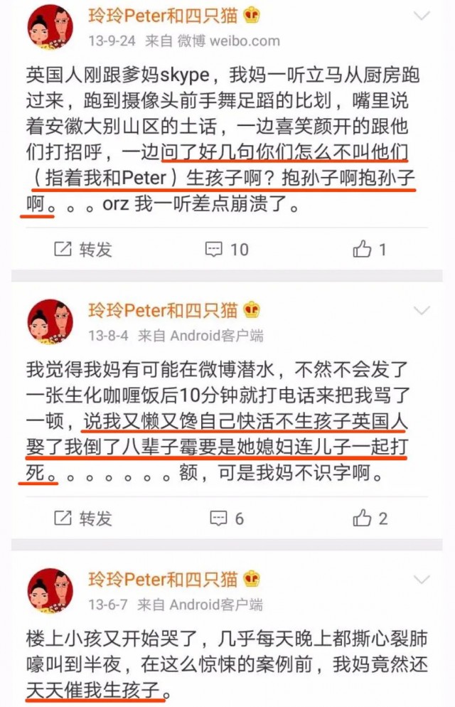 如今,玲玲已經38歲了,壹直沒有生孩子。她每天除了要應付網友的催生,還要應付媽媽的威脅: