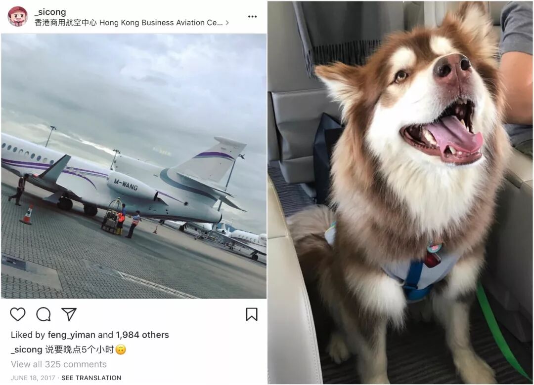 ▲?他也曬過私人飛機還帶著小狗出游,讓群眾大喊“活得不如狗”。