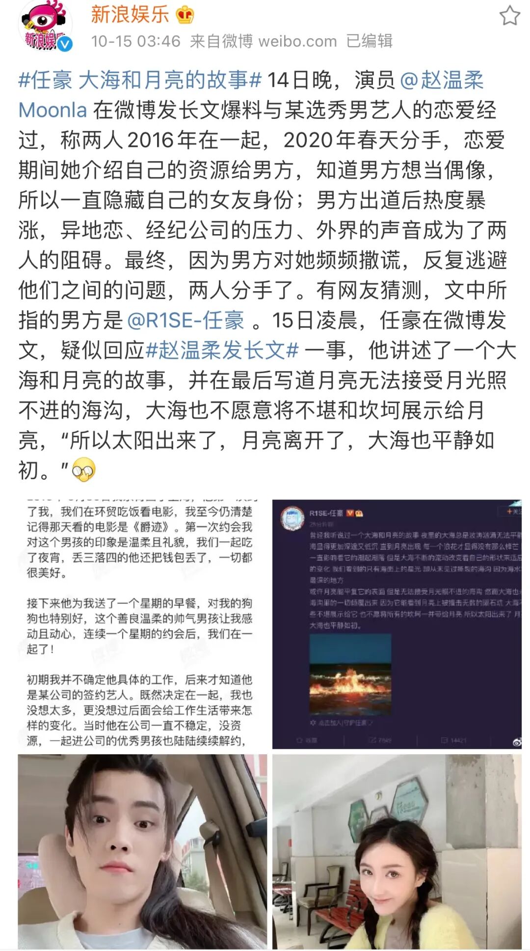 ▲?先是14號晚任豪被前女友爆料地下戀了叁年多分手,之後還有某個抖音網紅出來爆料他疑似劈腿(圖源:新浪娛樂)。