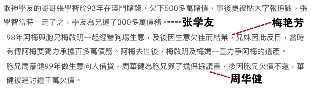 ▲ 兄弟姐妹欠債的何止明道壹人,張學友、梅艷芳、周華健每個都經歷過和至親為錢反目的痛。