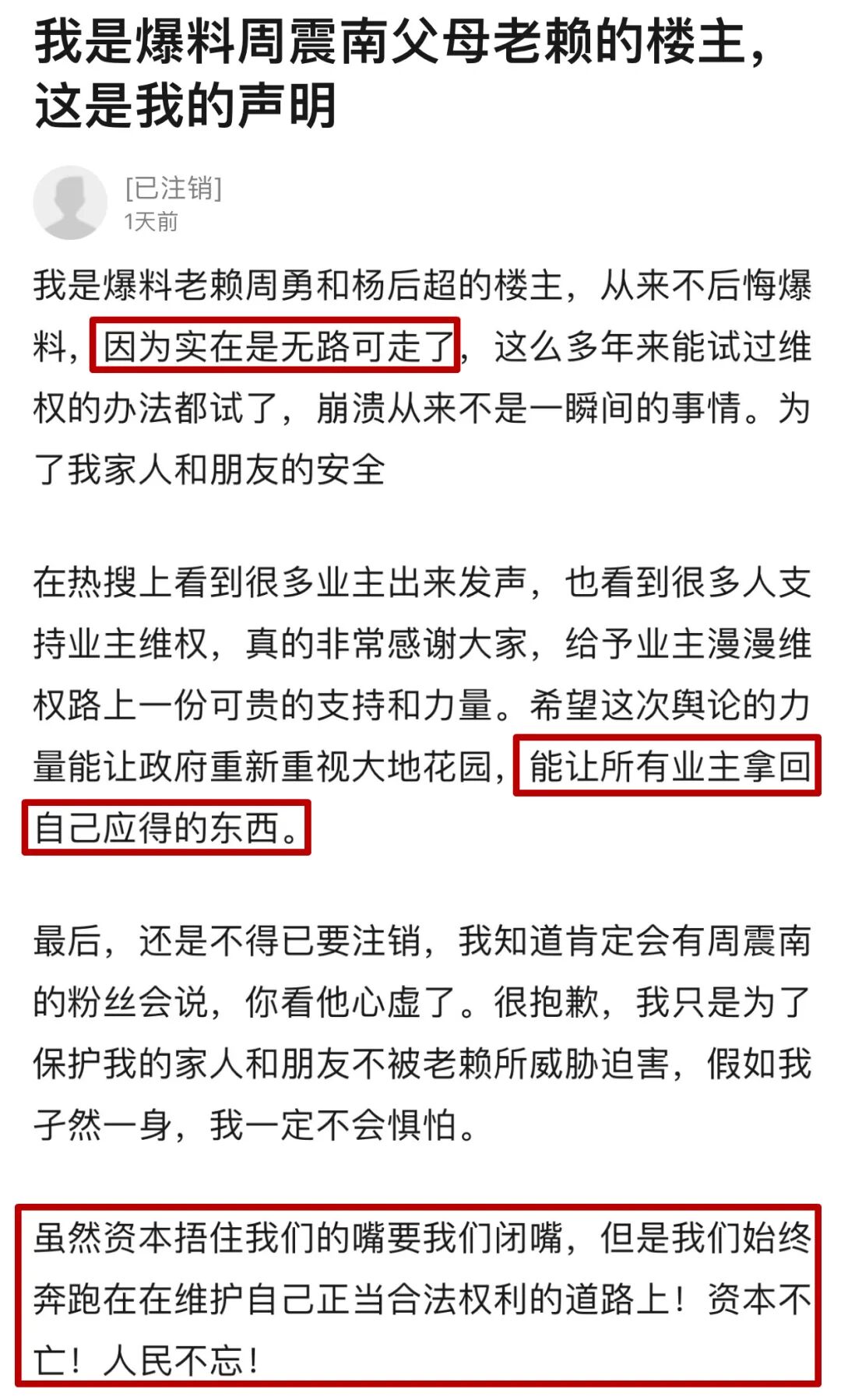 迫於壓力,豆瓣爆料者發布了最後的聲明後注銷了賬號。