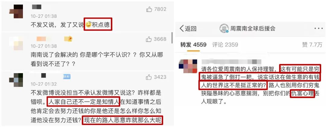 ▲?竟然還有粉絲能把這種維權定義為“路人惡意大”、“窮鬼倒打壹耙”、“仇富”,也是讓人匪夷所思。