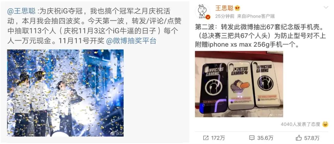 ▲?18年iG奪冠時,小王抽了113萬的現金和67個手機殼(附贈手機),這操作在當時實在是令人大開眼界。