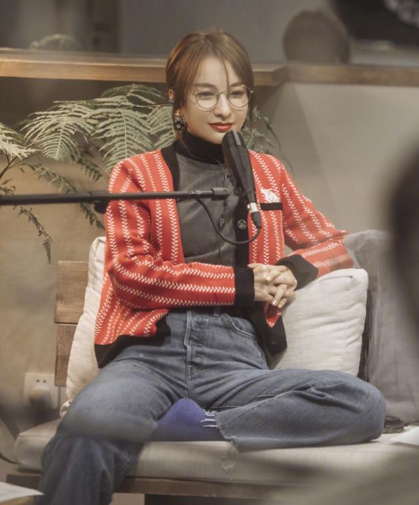 在色彩搭配上,除了極簡黑白風,“黑+紅”也是很經典的組合,壹抹紅色更添活躍氣息,但也不要過於鮮艷,像昕姐選擇了酒紅色毛衣作為內搭,復古范兒拾足,下身搭配藍色廓腿牛仔褲,率性灑脫,妥妥壹枚酷girl。