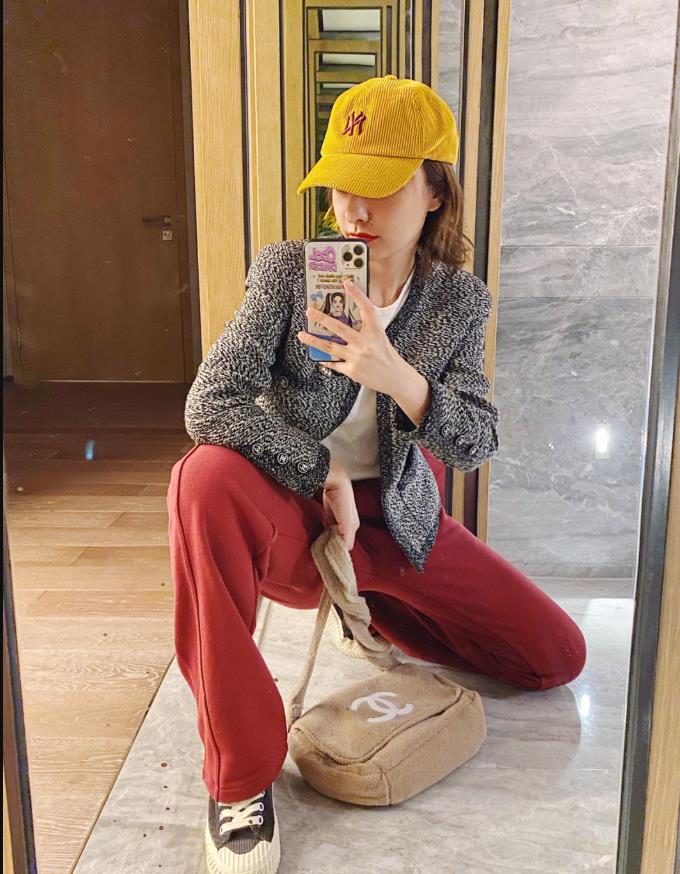 小香風上衣搭配紅色休閒褲,不同風格碰撞出不壹樣的時尚風采,黃色鴨舌帽點綴更是帶來強烈的色彩碰撞,個性鮮明,和其他幾套相比雖然沒那麼好駕馭,但如果搭配得好,這種大膽的撞色搭配也值得壹試。
