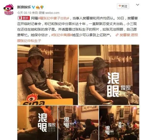 如此證據確鑿之下,前妻樊馨蔓依然否認出軌,甚至在接受記者采訪時聲稱:“張紀中在外養著比自己小31歲的小叁,私生子已經快叁歲了,自己在這裡苦苦的工作。”
