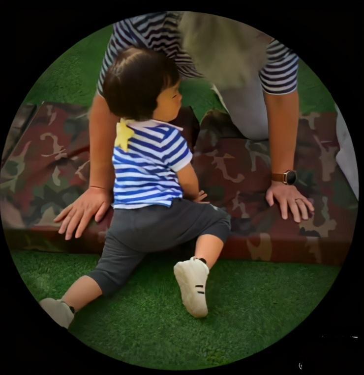 張紀中壹邊往地上趴下去,壹邊氣喘吁吁對嘟嘟俠說“爬到爸爸身上去”。