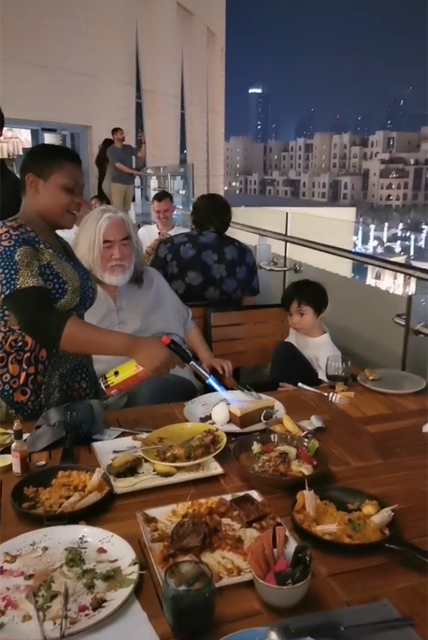 10月份時,有網友曝光了壹段視頻稱:“今天是張紀中導演寶貝小馬丁的生日,南非餐廳tribes為他慶生,dubai mall最佳觀景餐廳。”